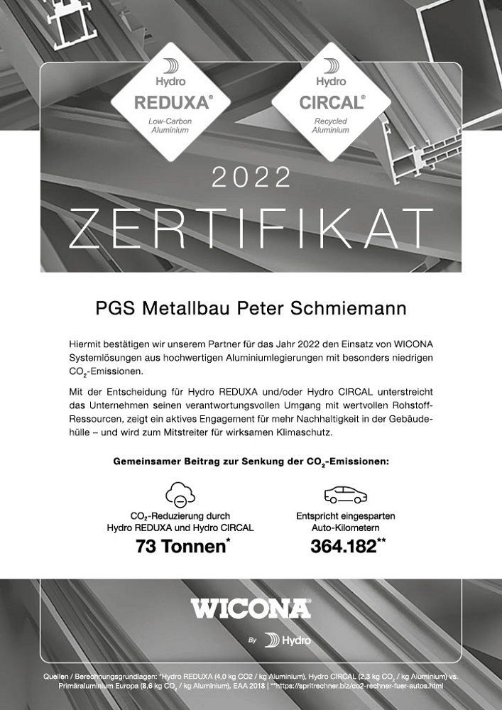 Das Aluminium für unsere Systeme Terra und Terraplus z.B. haben wir 2021 durch die Verwendung der Aluminiumlegierungen Hydro REDUXA und/oder Hydro CIRCAL 130 Tonnen CO2 eingespart.
